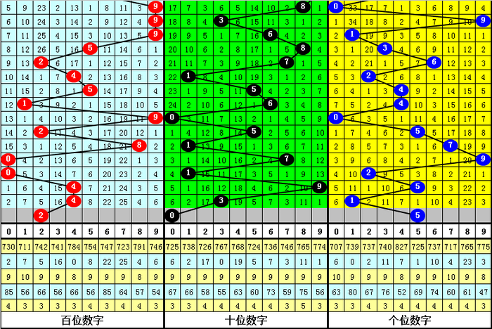 二、在最近22期开奖中,奖号:9、4、5、0,开出期数最多,本期注意这四码中落号,关注号码0;遗漏期数最多的三码奖号为:6、8、7,当期开奖一般不会全部出现冷码。