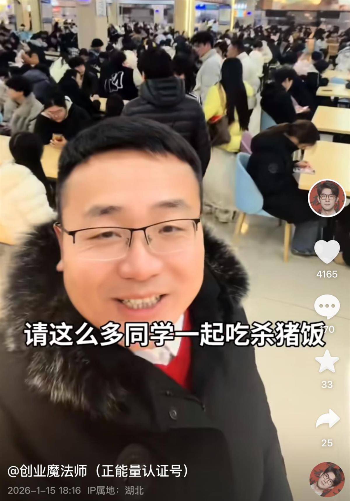 作为专业教师,郭懿锋也在现场进行直播示范。他的个人账号“创业魔法师”拥有超过百万粉丝,长期聚焦乡村振兴。过去一年,他积极带领学生深入助农一线,足迹遍布11个省、39个县、100个村,真正将课堂延伸到了广阔的田野之间。1月15日这场“校园刨汤宴”直播,累计观看人数突破百万,相关视频连续两天登上抖音恩施同城热榜,实现了文化传播与专业实践的双重收获。