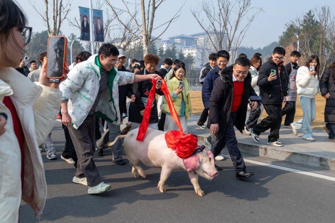 “快看,猪过来了!”1月15日,在师生们的围观和欢声笑语中,一场名为“跑骚”的传统环节在湖北恩施学院拉开了刨汤宴的序幕。一头寓意着丰收与吉祥的年猪被引入现场,师生们近距离感受着这一鲜活有趣的民俗。“这是我们恩施的老传统,让猪活动开,肉质更鲜美,也图个喜庆热闹。”活动发起人郭懿锋老师向大家作了解释。